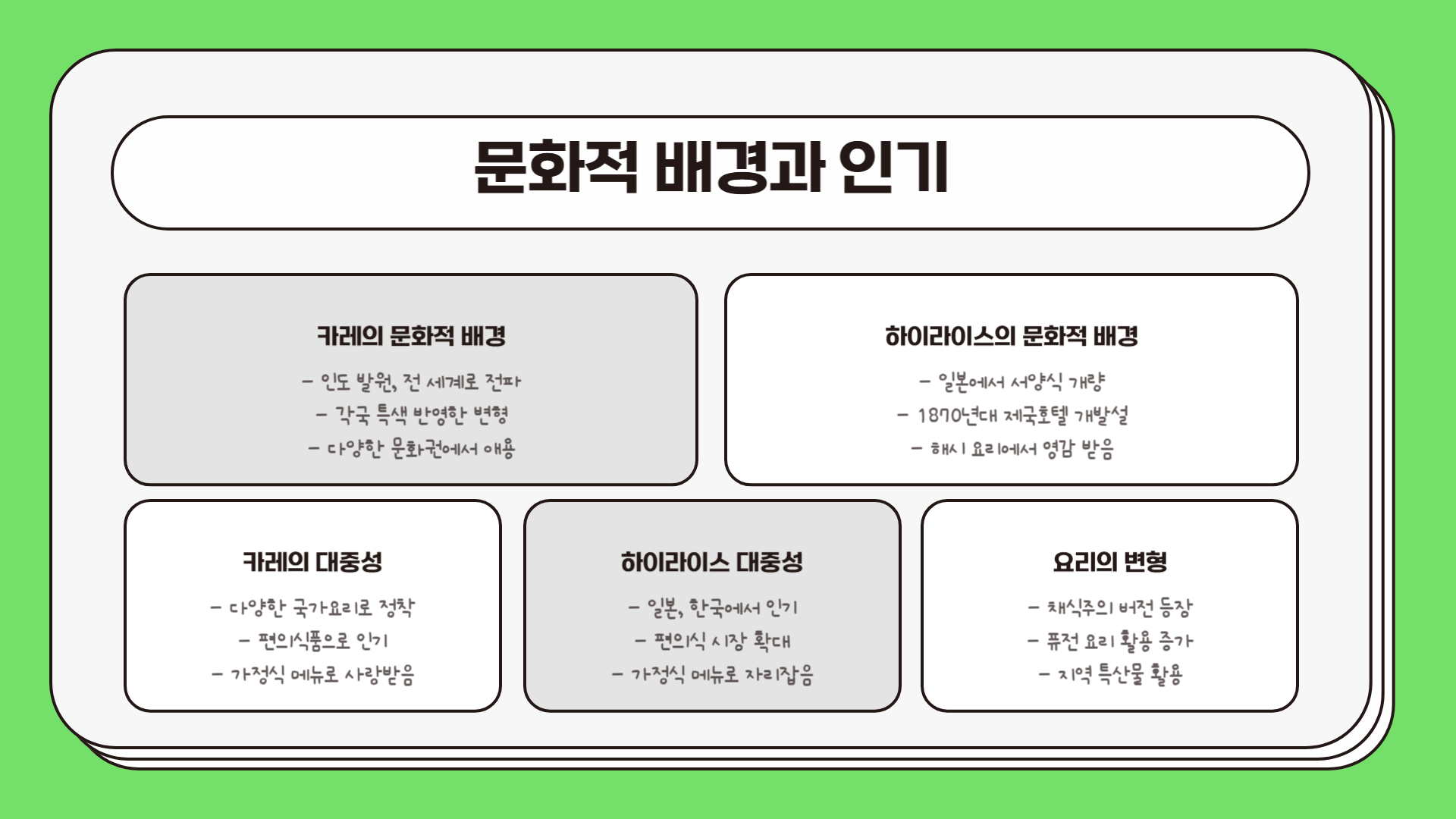 - 일본에서는 '카레라이스'로 불리며 가정식과 급식의 대표 메뉴로 자리 잡았습니다.