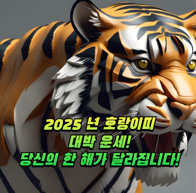 2025년은 호랑이띠에게 도전과 기회의 해입니다. 자신의 강점을 활용하고, 현실적인 계획과 꾸준한 노력을 통해 목표를 이룰 수 있습니다. 사랑, 재물, 건강, 직업, 학업 등 모든 면에서 긍정적인 변화가 예상되지만, 지나친 욕심이나 무리한 시도는 피하는 것이 좋습니다. 균형 잡힌 삶과 적극적인 자세로 새해를 맞이한다면, 더욱 풍성한 한 해가 될 것입니다.