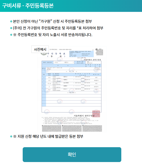 본인 신청이 아닌 가구원 신청 시 주민등록등본 첨부