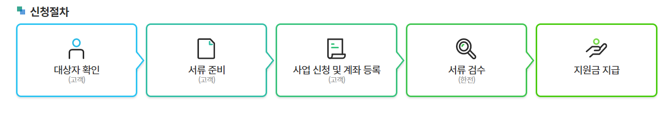 ✅대상자확인 > 서류준비 > 사업 신청 및 계좌등록> 서류검수 > 지원금 지급