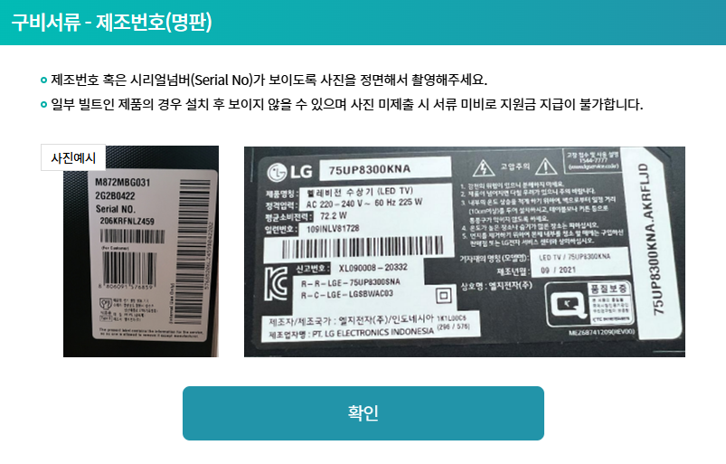 이 서류는 가전제품 구매시에 가전 대리점에서 발급 해주니 꼭 챙기시기 바랍니다.!