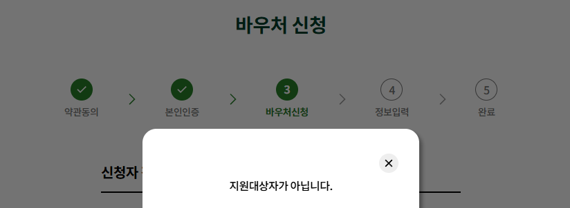 바우처 신청을 누르시면 지원대상 여부가 나오면서