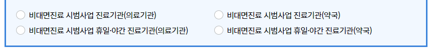 ✅상세항목에서 비대면진료 시범사업 진료기관(의료기관) 또는 약국 휴일 야간 진료기관을 선택합니다.