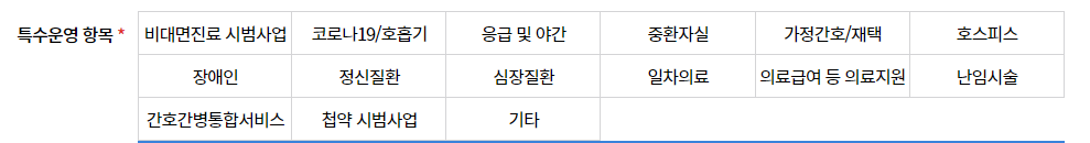 건강보험 요양급여 수가와 연계된 특수운영기관을 항목별로 손쉽게 찾을 수 있습니다.