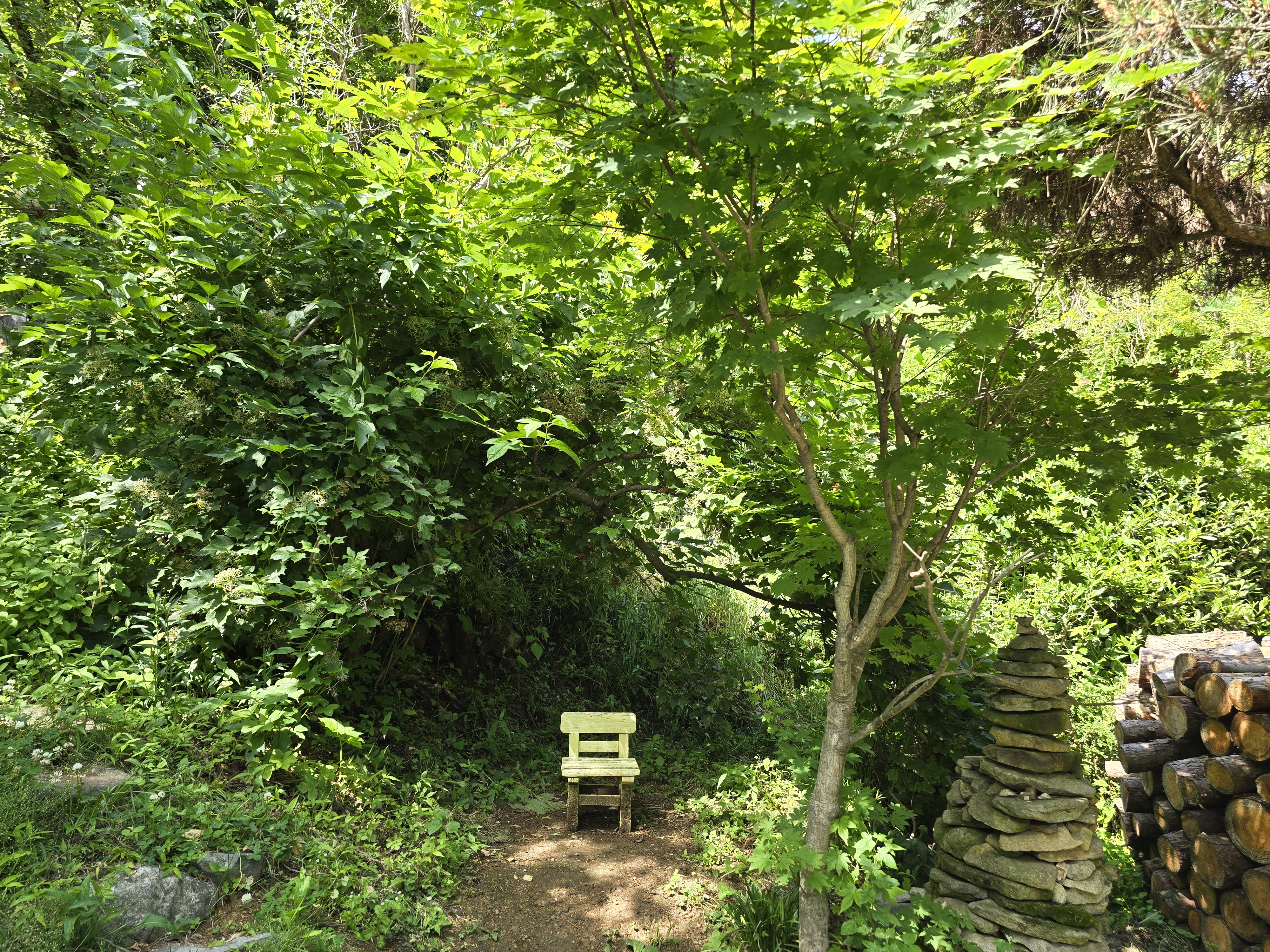 내려오는 길 옆에는 작은 나무 의자가있어요. 사진 찍기 좋은 장소 같아요. 아이들이 찍으면 예쁘게 잘나올거같네요.