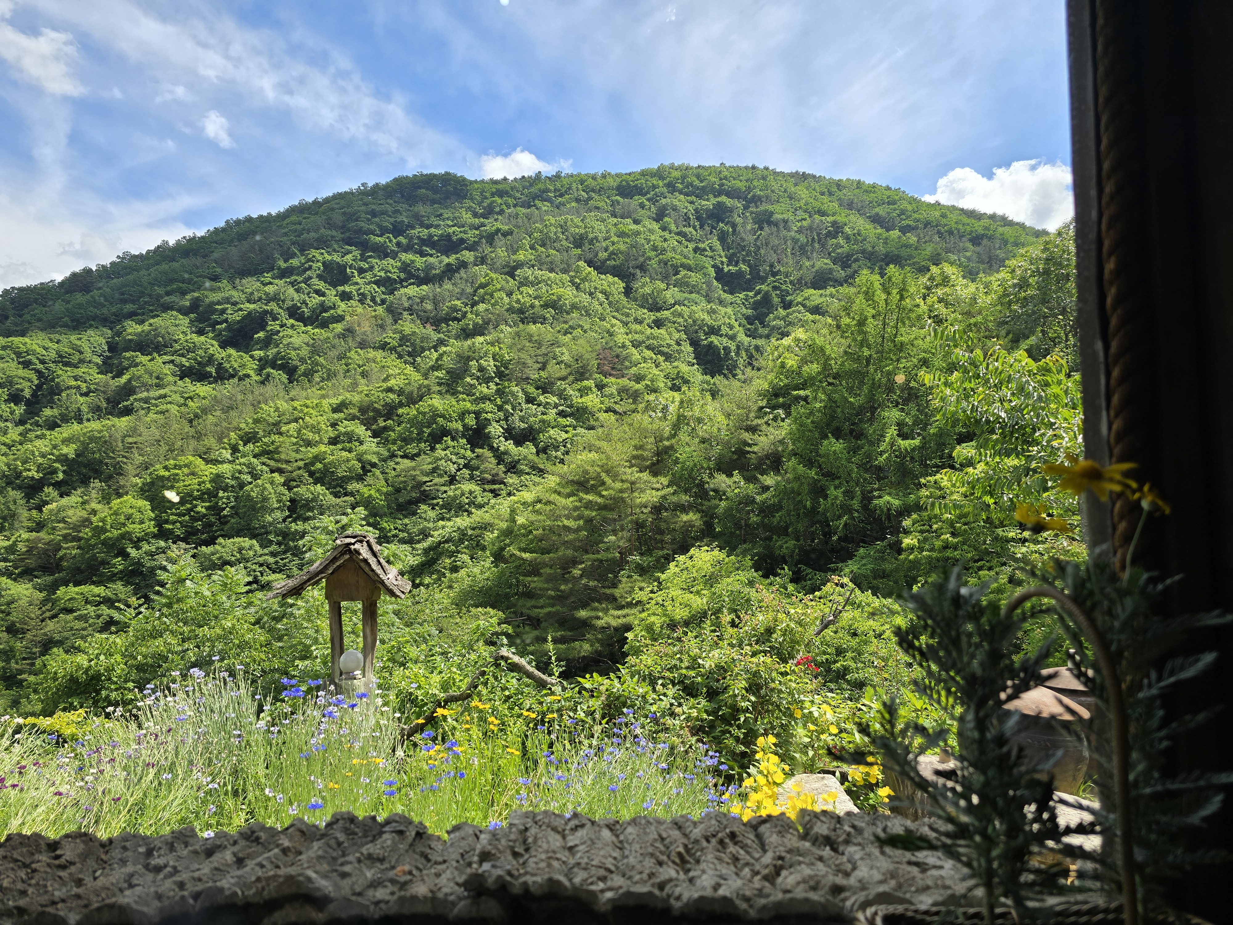 선류산장 카페의 장점은 자연 그대로를 즐길수 있다는 것 입니다. 지친 일상에서 자연으로 나오니까 너무 초록초록 하고 날씨도 좋고 기분이 좋았어요. 산속에 카페가 위치해 있어서 공기가 정말 맑았어요. 카페 주위에는 산과 나무만 보여요 ㅎ