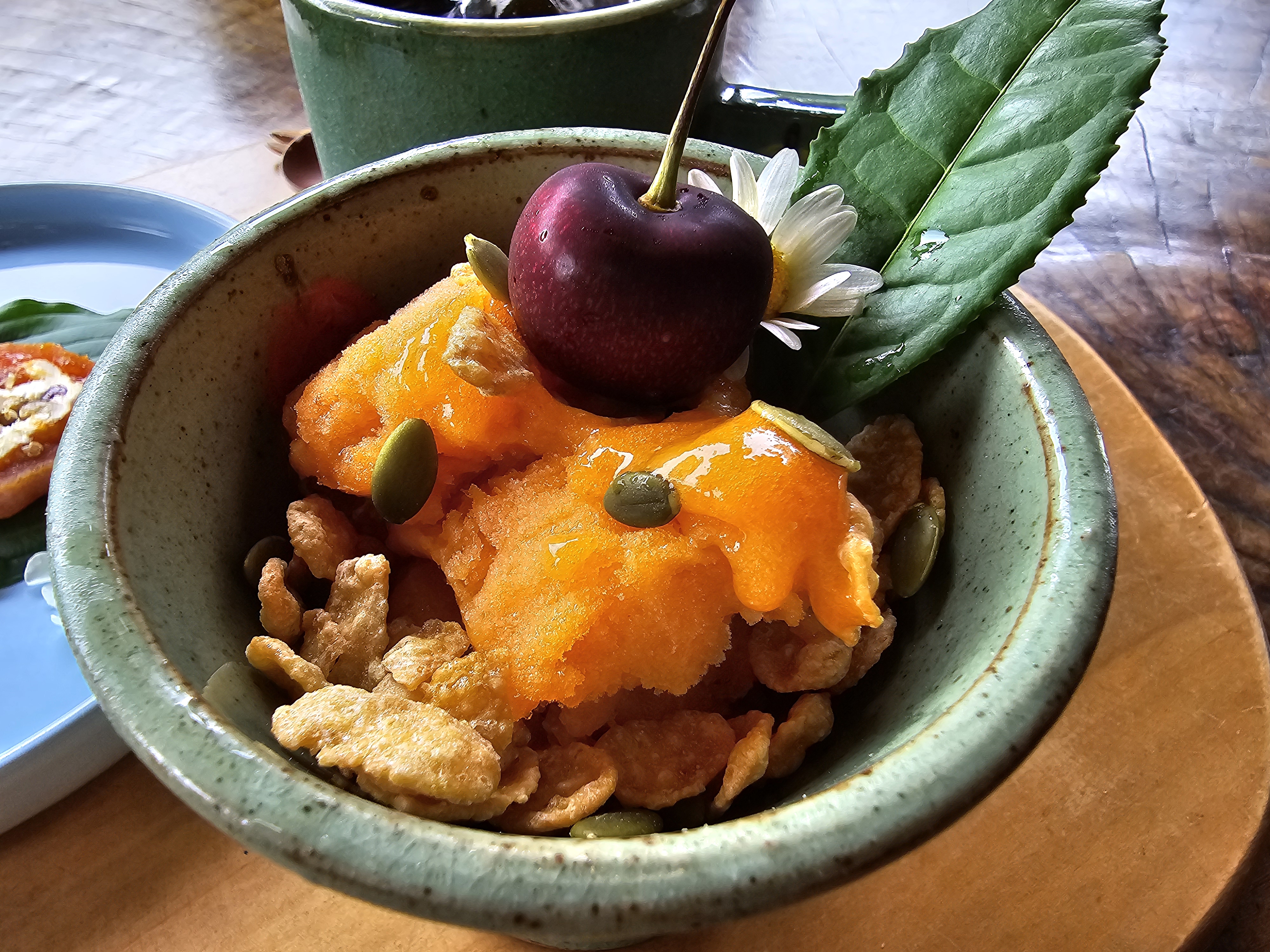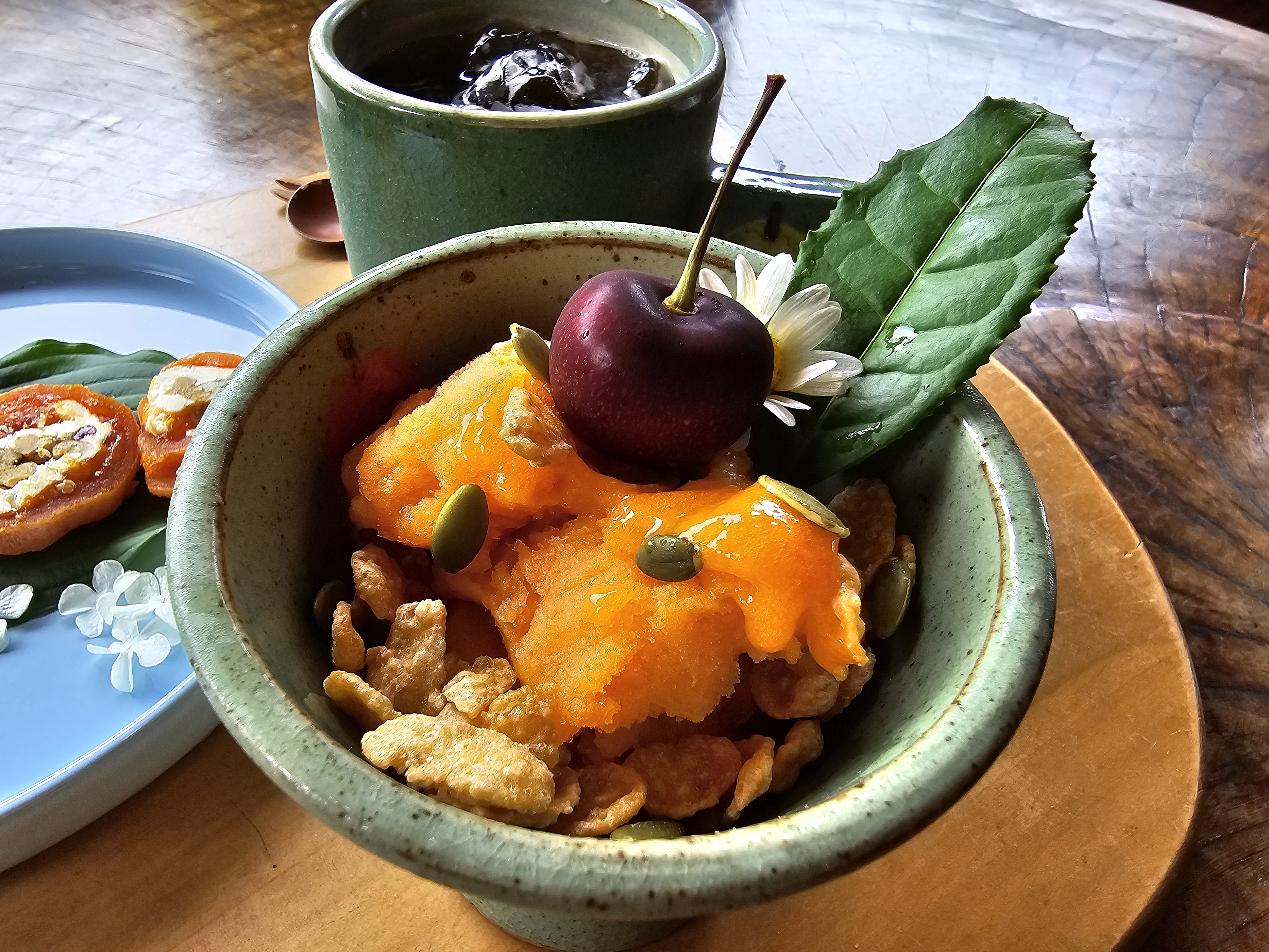 이 작은 메뉴는 홍시 스무디인데 시리얼하고 같이 먹으니 정말 맛이 배로 느껴지더라고요. 달달 고소한 맛이예요.