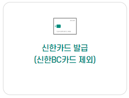본인 명의 신한 체크카드 또는 신용카드 발급 (BC카드는 제외) 기보유자는 보유 카드 사용 가능