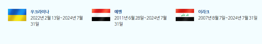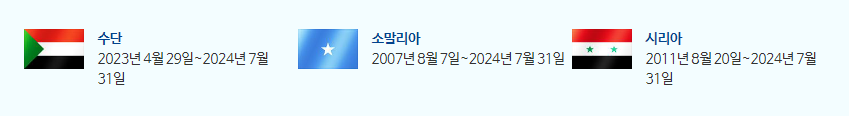 외교부는 우리 국민을 보호하기 위해 여권법 등 관련 규정에 따라 우리 국민의 방문 및 체류가 금지되는 국가(지역)를 지정하고 있습니다. 여행경보 4단계(흑색경보, 여행금지)에 해당하는 국가로서 허가 없이 방문하면 처벌을 받습니다.
