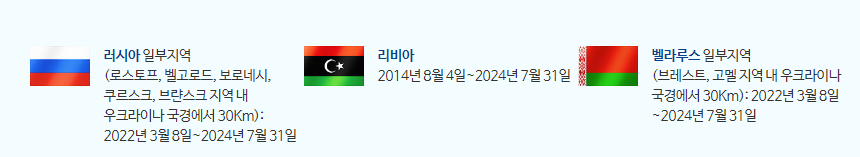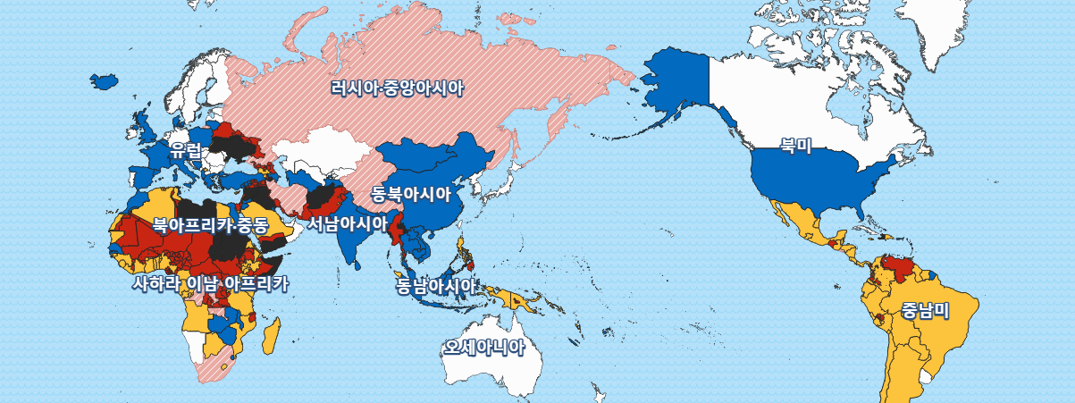 다음 국가 및 지역에 대한 방문·체류를 금지합니다.