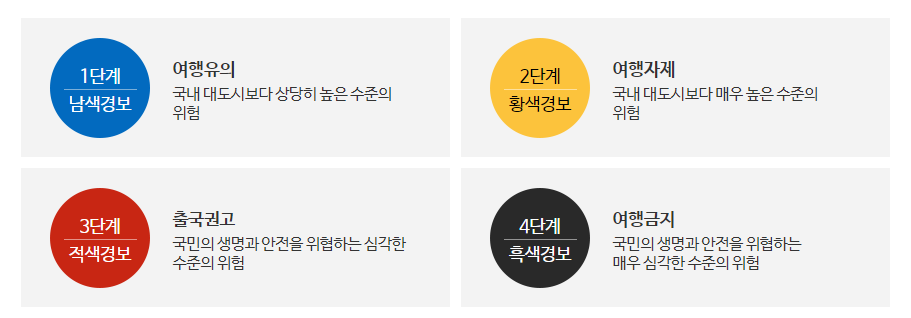 2단계(황색경보): 신변 안전 특별 유의 및 여행 자제