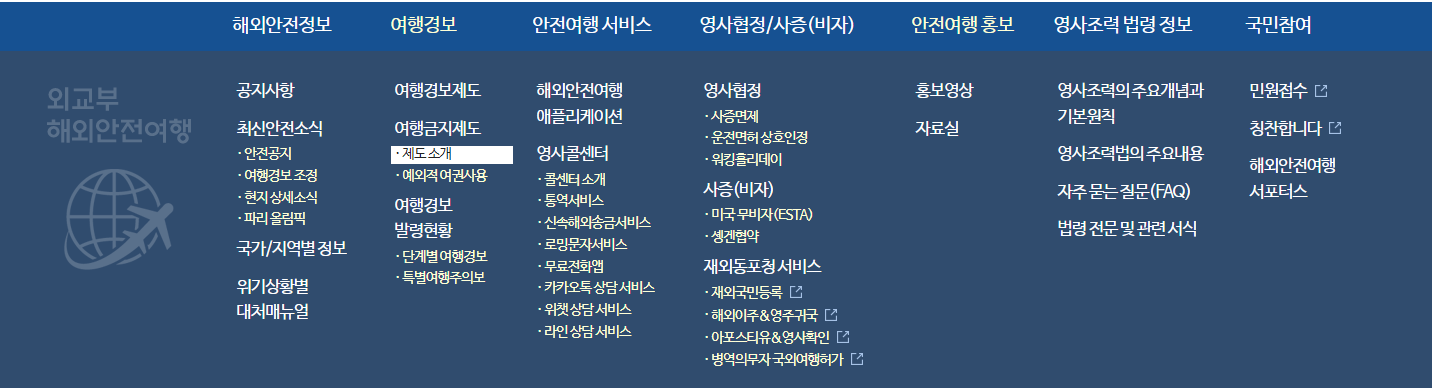 외교부에서는 2024년 6월 27일부터 국가별 해외안전여행 길잡이를 재외공관 홈페이지에 게재했습니다.